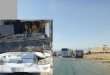 21 إصابة بحادث تصادم بين حافلة وشاحنة على الطريق الصحراوي