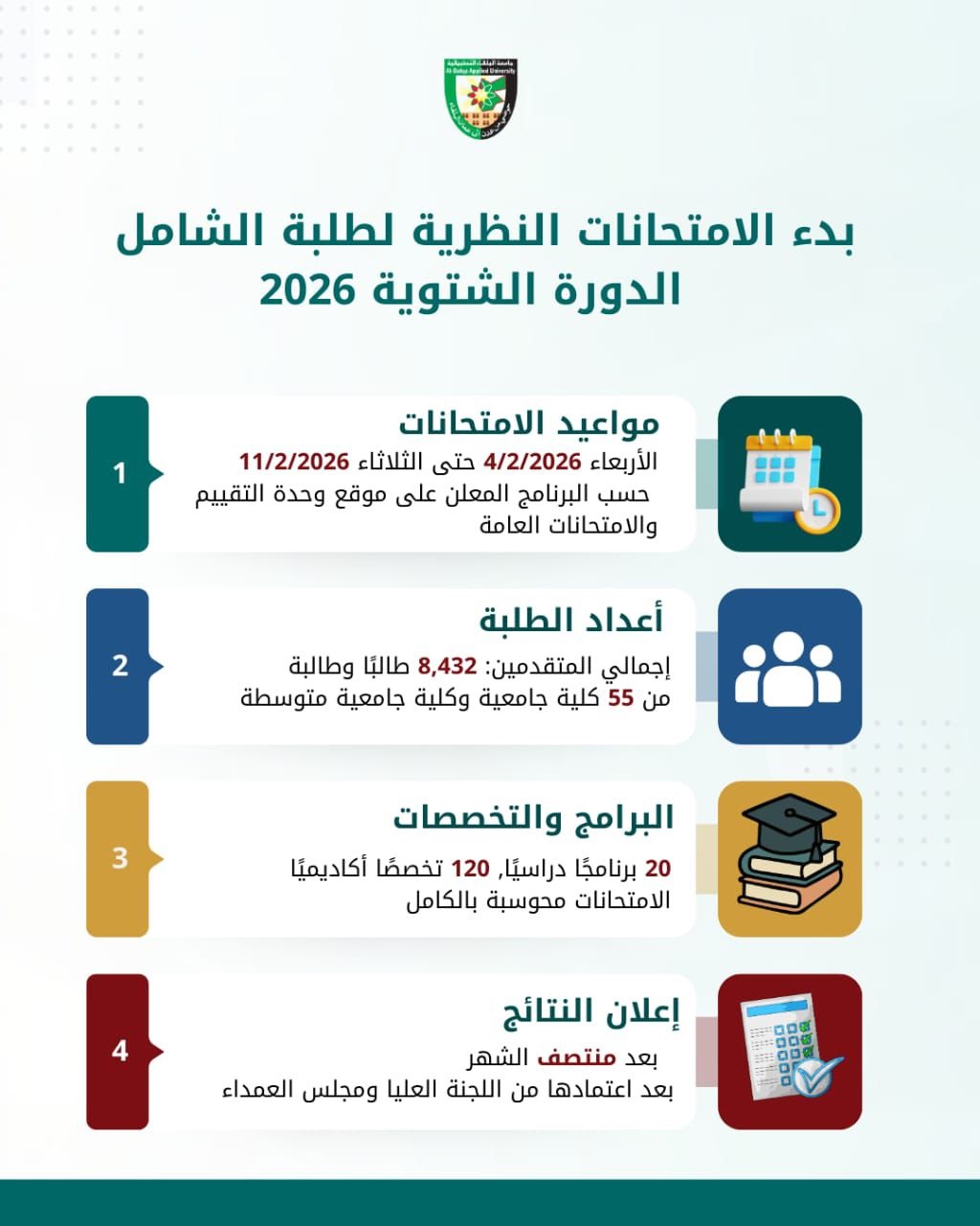 بدء الامتحانات النظرية لطلبة الشامل للدورة الشتوية 2026 الأربعاء