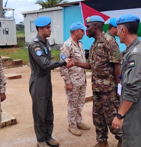 أخبار الاردن-نبراس نيوز- زار رئيس أركان قيادة القوات الدولية (المونسكو) العميد موشاك، يرافقه عدد من ضباط هيئة الأركان، أمس الجمعة، وحدة الطائرات العمودية الأردنية/ الكونغو 1 في القيادة الأمامية (FOB) بمطار “مَفيفي” بمدينة “بيني”، ضمن منطقة عمليات بعثة الأمم المتحدة لتحقيق الاستقرار في جمهورية الكونغو الديمقراطية.