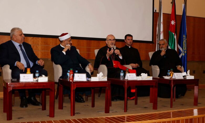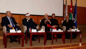وتحدّث في الندوة إمام الحضرة الهاشمية أحمد الخلايلة، ونيافة الكاردينال بييرباتيستا بيتسابالا، بطريرك القدس للاتين وعضو دائرة الحوار بين الأديان في الفاتيكان وذلك بحضور محافظ مأدبا حسن الجبور، وعدد من الأساقفة والكهنة والراهبات، ورجال دين إسلامي من دائرة قاضي القضاة ودائرة الإفتاء العام ووزارة الأوقاف والشؤون والمقدسات الإسلامية، إلى جانب رؤساء الدوائر الرسمية والدينية في المحافظة وطلاب الجامعة.