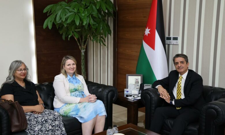 أخبار الاردن-نبراس نيوز-التقى وزير الشباب الدكتور رائد سامي العدوان في مقر الوزارة اليوم الاثنين سفيرة إيرلندا لدى الأردن ماريان بولجر، بحضور ممثلة منظمة الأمم المتحدة للطفولة بالإنابة، شيروز ماوجي، ومدير التخطيط والسياسات في الوزارة.