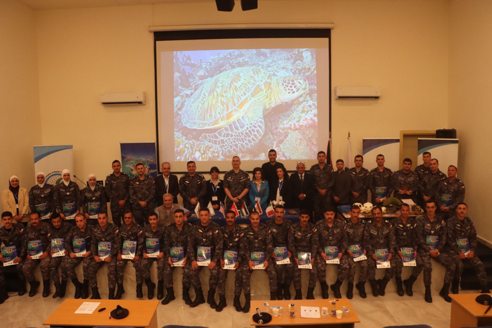 أخبار الاردن-نبراس نيوز- عقدت قيادة القوة البحرية والزوارق الملكية، أمس الأربعاء، ورشة عمل متخصصة في مجال حماية السلاحف البحرية والبرية، بالتعاون مع الجمعية الأردنية لحماية السلاحف البحرية والبرية.