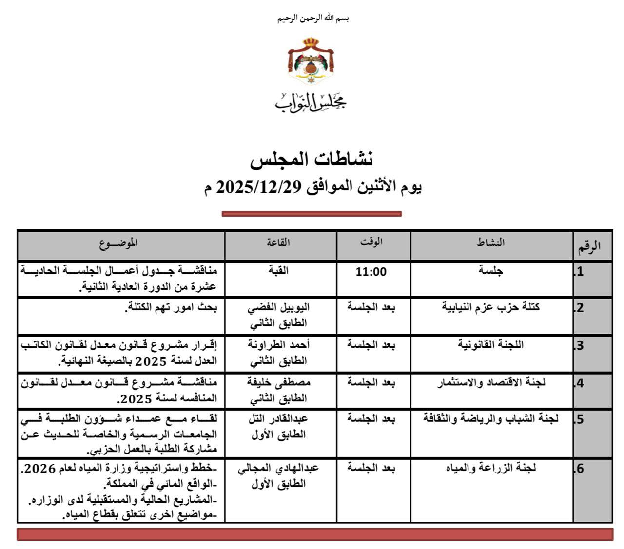 وتلتقي لجنة الشباب والرياضة والثقافة النيابية، مع عمداء شؤون الطلبة في الجامعات الرسمية والخاصة للحديث عن مشاركة الطلبة في العمل الحزبي.