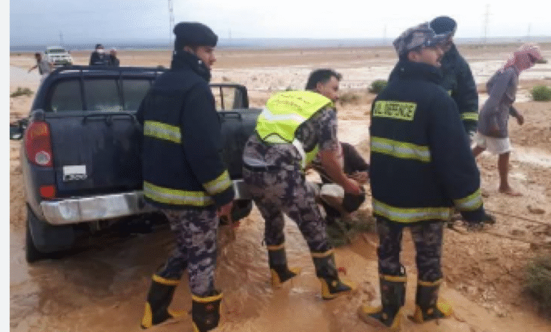 كوادر الأمن العام تُنقذ 5 أشخاص حاصرتهم السيول في الطفيلة